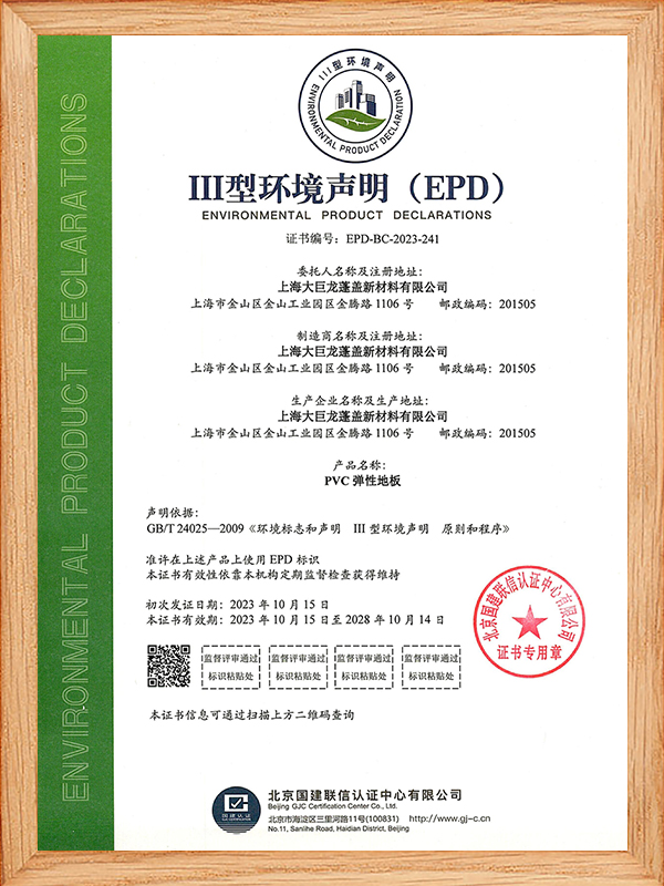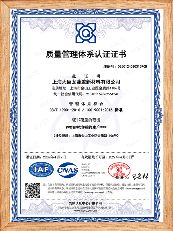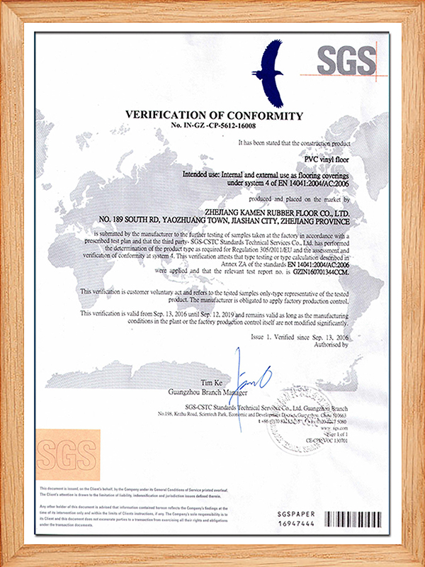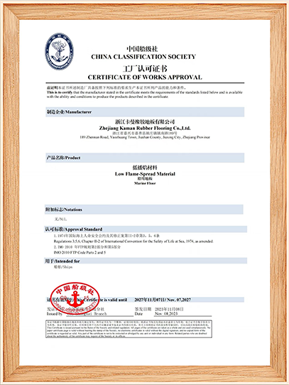 1. حصل على شهادة جمعية التصنيف الصينية (CCS) 2. أصبحت وحدة عضو في جمعية صناعة الأرضيات في تشجيانغ